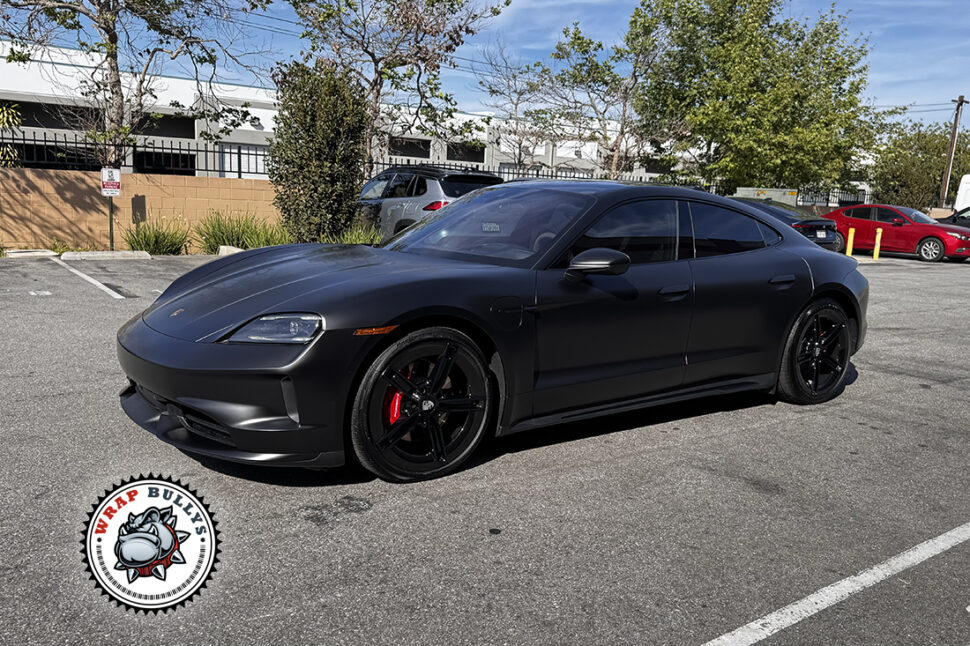 Read morePorsche Taycan completed with colored paint protection film in satin black at Wrap Bullys in South Bay Los Angeles.